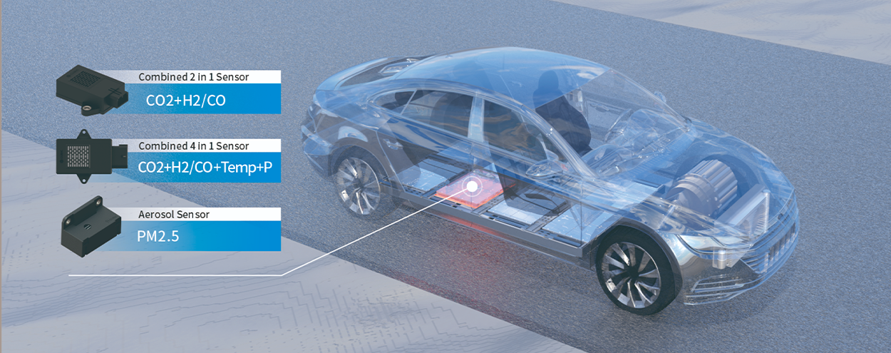 Cubic lithium-ion battery thermal runaway sensors can precisely detect the thermal runaway event with CO2, CO/HC/H2, smoke or aerosol, released from battery from very early stage.